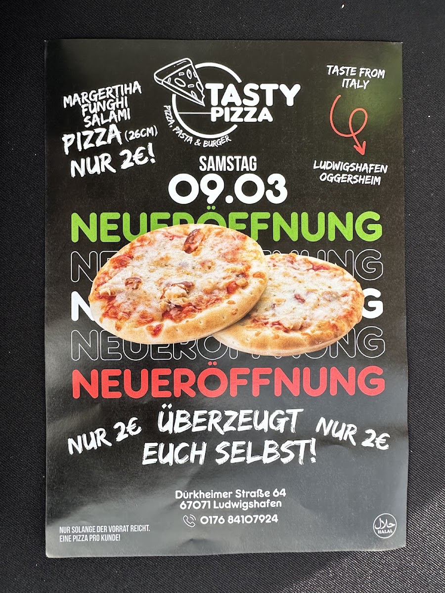 Welcome to Tasty Pizza, the culinary gem nestled on Dürkheimer Str. 64, Ludwigshafen am Rhein. This establishment lives up to its name, serving pizzas that are freshly made with high-quality ingredients, ensuring each bite is a delight. Customers rave about the flavorful crust—perfectly balanced between crispy and tender—ideal for enjoying without utensils.
